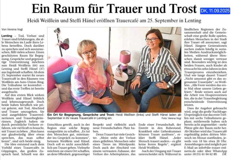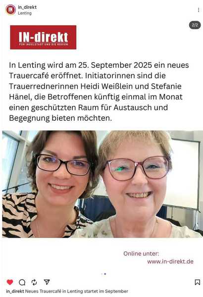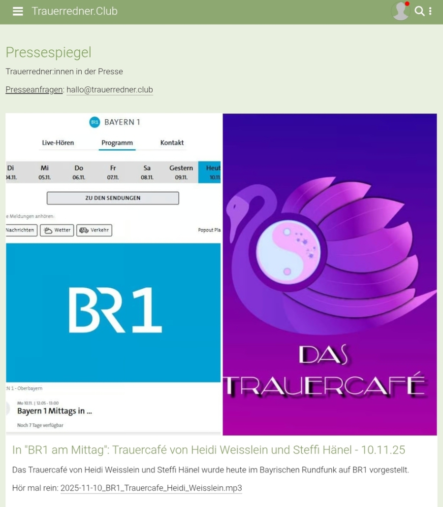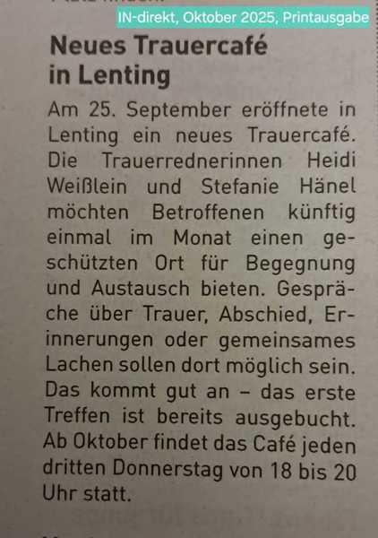 Der bayerische Rundfunk brachte in seinem Sender Bayern 1 am 10. November 2025 einen Radiobericht genau zu diesem Thema - und dem Trauercafé Lenting.