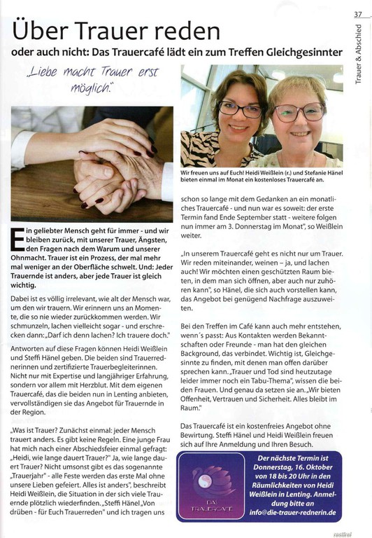 Auch der Trauerrednerclub berichtet über unser Trauercafé:
